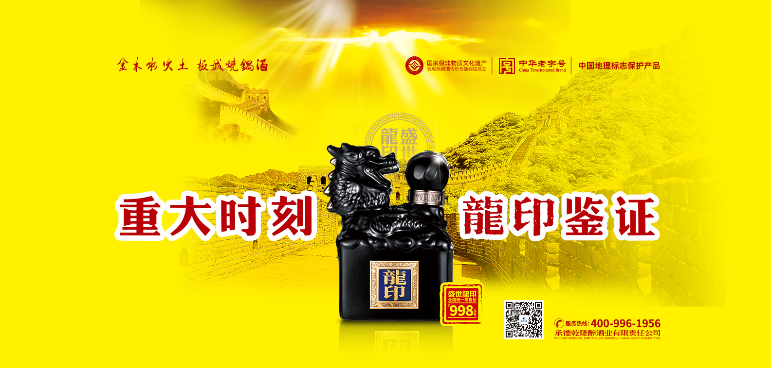 承德板城酒業(yè)銷(xiāo)售有限公司(簡(jiǎn)稱(chēng):板城酒業(yè))是一家有著幾百年歷史的慶元亨燒酒作坊。從康熙五十六年,皇莊燒鍋?zhàn)鞣贿w至板城古鎮(zhèn)至今,已經(jīng)承載了308年的悠久歷史。乾隆三十八年,乾隆皇帝與紀(jì)曉嵐一句“金木水火土,板城燒鍋酒”的千古妙對(duì),使承德慶元亨酒坊的板城燒鍋酒名揚(yáng)天下,這也成為企業(yè)記憶傳承中,不能割舍的文化淵源。
