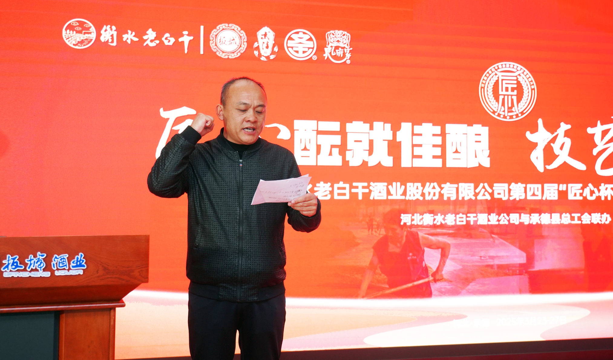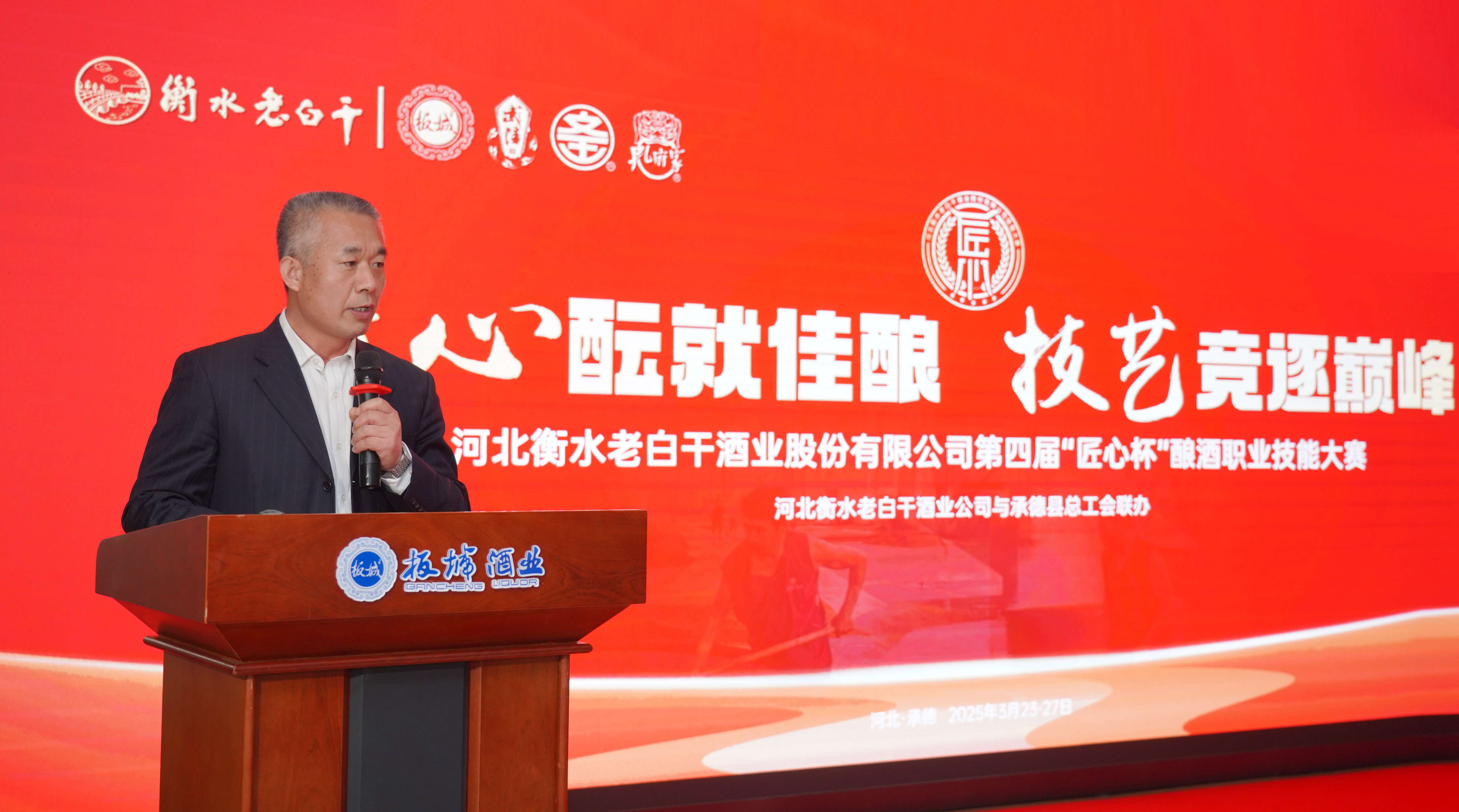 承德縣總工會黨組書記、常務(wù)副主席溫明忠在活動中致辭,他講到:“此次‘匠心杯’釀酒職業(yè)技能大賽,是老白干酒業(yè)集團(tuán)為旗下五家酒業(yè)公司的‘技能大師’們搭建的切磋技藝、展示風(fēng)采、傳承精神的廣闊舞臺。每一位參賽選手都是各自企業(yè)的佼佼者,他們帶來的不僅是精湛的釀酒技藝,更是對釀酒事業(yè)的無限熱愛與執(zhí)著追求。通過這場比賽,大家相互學(xué)習(xí)、相互交流,在競爭中進(jìn)步,在切磋中成長,必將推動酒行業(yè)整體水平的大幅提升。希望以此次大賽為新的起點,進(jìn)一步弘揚工匠精神,加強技術(shù)創(chuàng)新與研發(fā),為消費者釀造出更高品質(zhì)的美酒,為中國酒業(yè)的發(fā)展注入新的活力。”